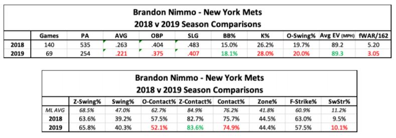 With the conclusion of the 2019 season, this is how Brandon Nimmo’s previous two seasons compared to each other: